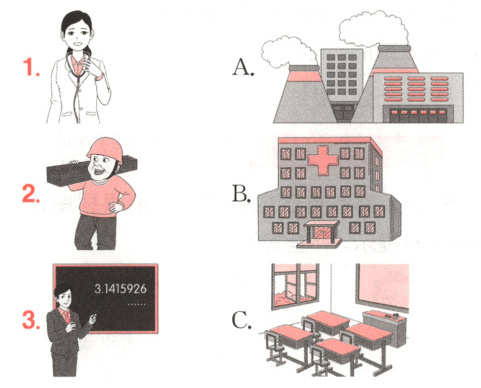 工人在工厂工作;医生在医院工作,教师在学校工作。
