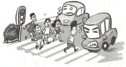 2. 上学就要迟到的小亮不顾“禁止翻越”的标识,翻过马路中间的栏杆,向对面的公交车站跑去,马路上正在行驶的车辆为躲避突然横穿马路的小亮,与其他车辆发生了碰撞……小亮的行为警示我们(