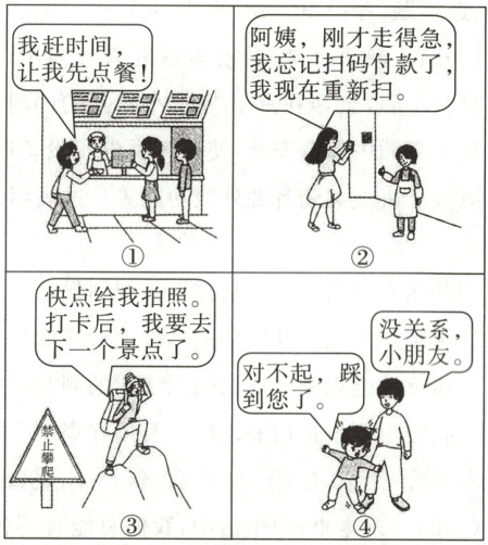 10. 近年来,以快节奏打卡为特征的“特种兵式旅游”尤其受到年轻人追捧。以下是小露搜集的部分今年五一“特种兵式”游客的言行情境。(16 分)