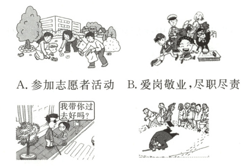 1. 老师在课堂上展示了以下图片,其中不能体现亲社会行为的是(
