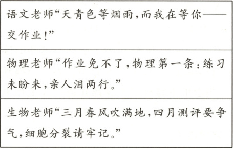 2. 下表中某校教师的“花式催作业”极大地调动了同学们写作业的积极性。这告诉我们 (