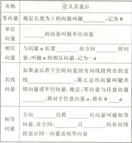 。空间向量用字母$\boldsymbol{a},\boldsymbol{b},\boldsymbol{c},·s$表示,也用有向线段表示,有向线段的