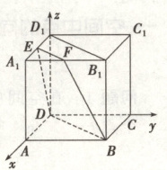 2.解:设正方体$ABCD - A_1B_1C_1D_1$的棱长为2,则$D(0,0,0)$,$B(2,2,0)$,$D_1(0,0,2)$,$E(1,0,2)$.