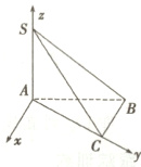 4.解析:如图,以$A$为坐标原点,平行于$BC$的直线为$x$轴,$AC$,$AS$所在直线分别为$y$轴、$z$轴建立空间直角坐标系,