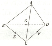 4. 如图,已知空间四边形$ABCD$,连接$AC, BD$,$E, F, G$分别是$BC, CD, DB$的中点,请化简以下式子,并在图中标出化简结果。