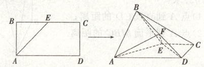 4. 如图所示,已知在矩形$ ABCD $中,$ AD = 2AB = 2\sqrt{3} $,$ E $为$ BC $的中点,将$ \triangle ABE $沿$ AE $折起,使得$ AB \perp DE $。