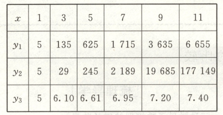 (2) 三个变量 $ y_{1},y_{2},y_{3} $随着变量 $ x $的变化情况如表:
