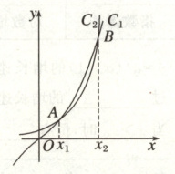 【例 2】 函数 $ f(x) = 2^{x} $和 $ g(x) = x^{3} $的图象如图所示.设两函数的图象交于点 $ A(x_{1},y_{1}) $, $ B(x_{2},y_{2}) $,且 $ x_{1} < x_{2} $.