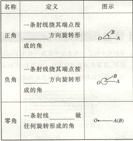 提示 由一点引出的两条射线所组成的图形,角的范围是$0^{\circ} \sim 360^{\circ}$.