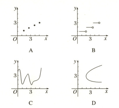 3.D 任作一条垂直于x轴的直线,移动直线,此直线与函数图象至多有一个交点,选项D不满足函数图象的要求。