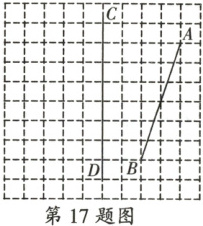 17. 如图,在由边长为1个单位长度的小正方形组成的网格中,点$A$,$B$,$C$,$D$均为格点(网格线的交点)。