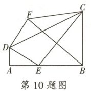 10. 如图,在四边形$ ABCD $中,$ \angle A = \angle ABC = 90° $,$ AB = 4 $,$ BC = 3 $,$ AD = 1 $,点$ E $为边$ AB $上的动点.将线段$ DE $绕点$ D $逆时针旋转$ 90° $得到线段$ DF $,连接$ FB,FC,EC $,则下列结论错误的是 (