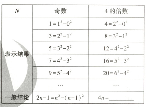 ②由规律可得4n = (n + 1)² - (n - 1)².
