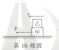 16. 如图所示,叠放在水平面上的甲、乙两个长方体物块,在水平拉力F的作用下,一起以速度v向左做匀速直线运动。下列说法正确的是 (