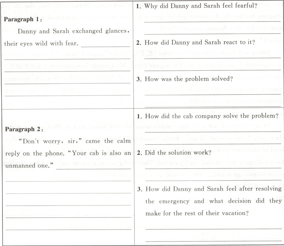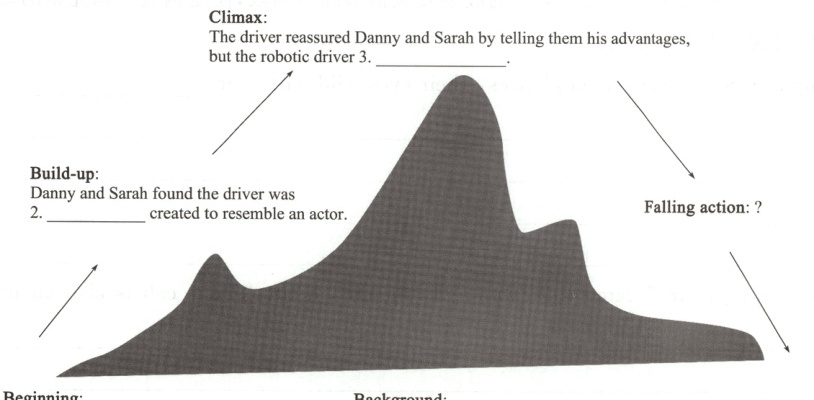 任务一:The article mainly talks about Danny and Sarah’s encounter with a robotic taxi driver, who reassures them about his safety and reliability.