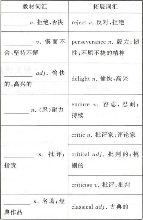 II.inform; dread; rarely; rejection; persevere; delighted; endurance; criticism; classic