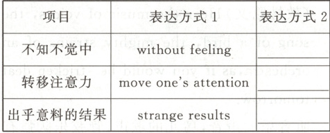 不知不觉中 without feeling 转移注意力 move one's attention出乎意料的结果 strange results