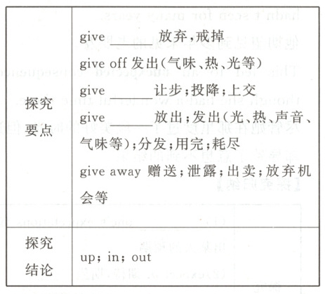 2.①gives out ②give away ③give up ④give in⑤give off