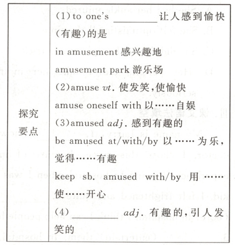 (1)①amused ②amusing (挑战创新题) My Chinese teacher who/that is very amusing always makes us laugh in class. ③amusement