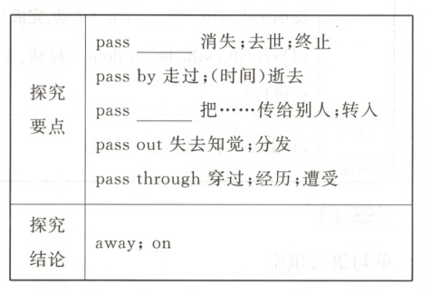 【探究归纳】 away;on 即学即练 ①through ②by ③away ④down ⑤on