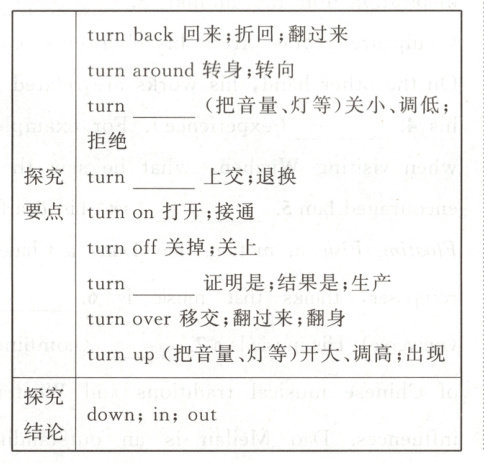 【探究归纳】 down;in;out 即学即练