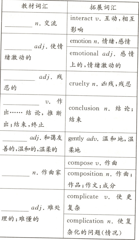 II.remark;interaction;emotive;cruel;conclude;gentle;composer;complicated