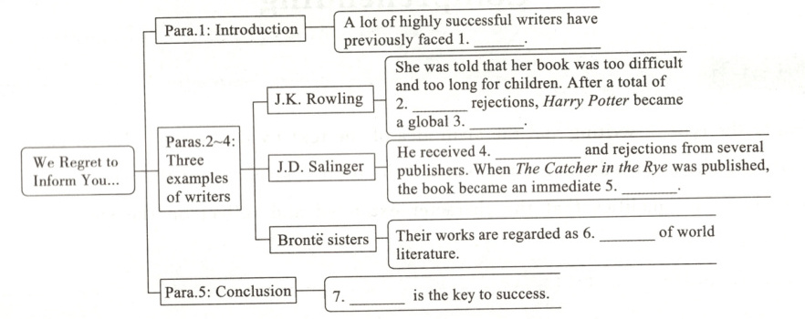 1.非限制性定语;状语;动宾;在收到12封拒稿信后,终于有家出版商同意将她的第一本书印刷500册。我们都知道,《哈利·波特》后来在全球大获成功,销量超过4亿册,被翻译成了70多种不同的语言。