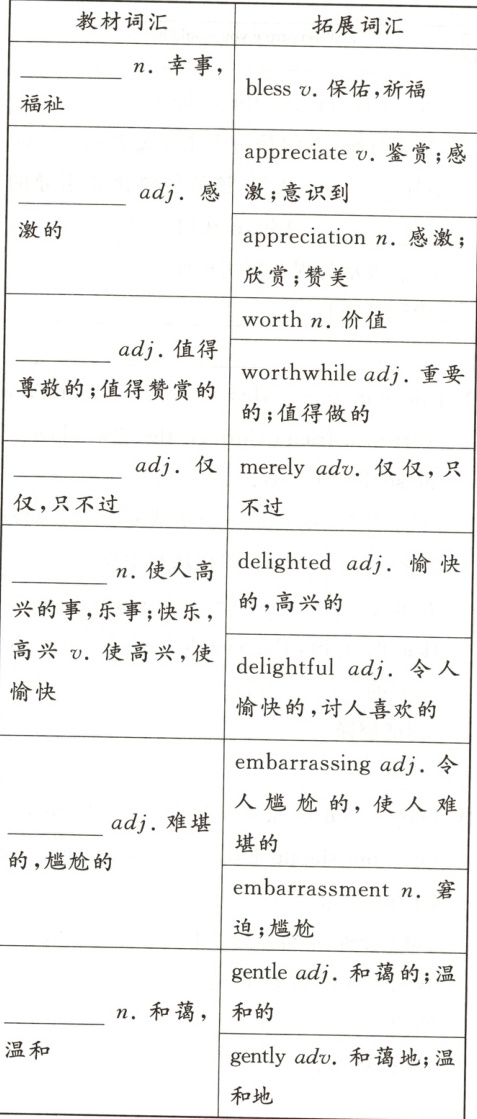 Ⅱ. blessing; appreciative; worthy; mere; delight; embarrassed; gentleness