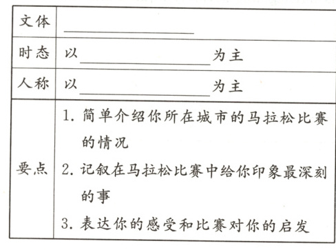 今年 10 月你所在的城市举办了马拉松比赛,你有幸观看了比赛,请就你的所见所闻用英语写一篇运动记事。内容包括: