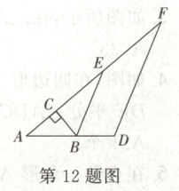 12. 如图,在$Rt\triangle ABC$中,$\angle ACB=90^{\circ}$,$\angle A=40^{\circ}$,$\triangle ABC$的外角$\angle CBD$的平分线$BE$交$AC$的延长线于点$E$。过点$D$作$DF// BE$,交$AC$的延长线于点$F$,求$\angle F$的度数。