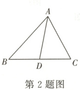 2. 如图,在△ABC中,AB = 8,AC = 5,AD为中线,则△ABD与△ACD的周长之差为(