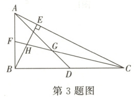 3. 如图,AD,BE,CF分别是△ABC的中线、高和角平分线,∠ABC = 90°,CF交AD于点G,交BE于点H,AB = BD。则下列结论中不一定正确的是(