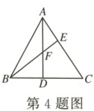 4. 如图,在△ABC中,∠BAC = 54°,∠ABC = 72°,AD⊥BC于D,BE⊥AC于E,AD与BE交于F,则∠AFB的度数是(