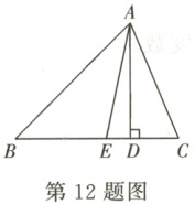 12. 如图,在△ABC中,∠B = 40°,∠C = 60°,AD,AE分别是△ABC的高与角平分线,则∠DAE =