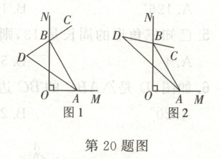 20. (13分)已知∠MON = 90°,点A,B分别在边OM,ON上运动(不与点O重合)。