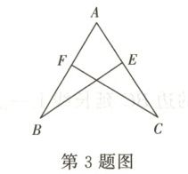 3. 如图,$\triangle ABE \cong \triangle ACF$,$\angle B$和$\angle C$是对应角. 若$AB = 5$,$AE = 2$,则$EC$的长为(