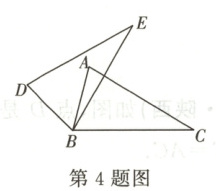 4. 如图,$\triangle ABC \cong \triangle DBE$,点$A$和点$D$,点$C$和点$E$是对应顶点. 若$\angle ABC = 80^{\circ}$,$\angle D = 65^{\circ}$,则$\angle C$的度数为(