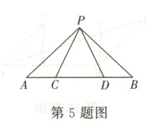 5. 如图,$\triangle PAC \cong \triangle PBD$,$\angle A$和$\angle B$是对应角,$PC$和$PD$是对应边. 若$\angle A = 40^{\circ}$,$\angle BPD = 20^{\circ}$,则$\angle PCD$的度数为