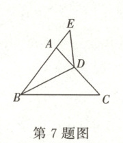 7. 如图,在△ABC中,点D在AC上,BD平分∠ABC,延长BA到点E,使得BE=BC,连接DE。若∠ADE=38°,则∠ADB=