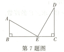 7. 如图,已知AB⊥BC于B,CD⊥BC于C,BC=13,AB=5,且E为BC上一点,∠AED=90°,AE=DE,则BE=