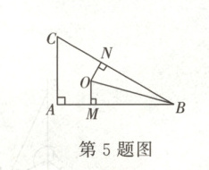 5. 如图,点$O$在一块直角三角板$ABC$上(其中$\angle ABC = 30^{\circ}$),$OM\perp AB$于点$M$,$ON\perp BC$于点$N$,若$OM = ON$,则$\angle ABO =$
