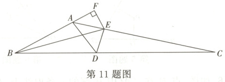 11. 如图,在$\triangle ABC$中,点$D$在$BC$边上,$\angle BAD = 100^{\circ}$,$\angle ABC$的平分线交$AC$于点$E$,过点$E$作$EF\perp AB$,垂足为$F$,且$\angle AEF = 50^{\circ}$,连接$DE$.