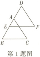 1. 如图,$\triangle ABC \cong \triangle DEF$,点$A$和点$D$,点$C$和点$F$是对应顶点。若$DE = 5$,$AE = 2$,则$BD$的长是(