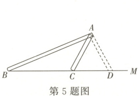 5. 如图,把长短确定的两根木棍$AB$,$AC$的一端固定在$A$处,和第三根木棍$BM$摆出$\triangle ABC$固定,木棍$AC$绕$A$转动,得到$\triangle ABD$,这个实验说明(