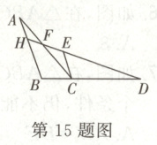 15. 如图,在$\triangle ABC$中,$\angle B = 110^{\circ}$,延长$BC$至点$D$,使$CD = AB$,过点$C$作$CE // AB$,使$CE = BC$,连接$DE$并延长,交$AC$于点$F$,交$AB$于点$H$。若$\angle D = 20^{\circ}$,则$\angle CFE$的度数为