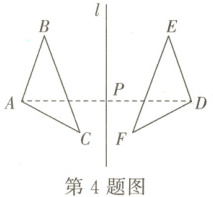 4. 如图,△ABC 与△DEF 关于直线 l 成轴对称,下列结论正确的是(