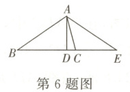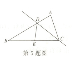 5. 如图,D 为△ABC 的边 AB 上一点,点 A 关于直线 CD 的对称点 E 恰好在线段 BC 上,连接 DE,若 AB = 7,AC = 3,BC = 6,则△BDE 的周长是(