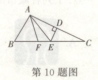 10. 如图所示,在△ABC中,AF平分∠BAC交BC于点F,AC的垂直平分线交BC于点E,交AC于点D,∠B=70°,∠FAE=19°,求∠C的度数。