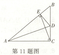 11. 如图,在△ABC中,∠ACB=90°,AD平分∠BAC,DE⊥AB于E。