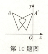 10. 在平面直角坐标系中摆放着一个轴对称图形,其中点 $ A(-6,6) $ 的对称点 $ A' $ 的坐标为 $ (0,6) $,点 $ M(m,n) $ 为图象上的一点,则点 $ M $ 在图象上的对称点的坐标为